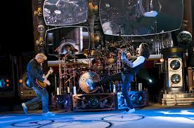 Usually when a rock drummer starts into a long solo at an arena show, that’s a sign for the audience to sit down, maybe even head to the exits in search of beer. With Rush drummer Neil Peart it’s different. When he started into his extended solo toward the end of the nearly three-hour performance, people instantly stood up—and didn’t sit down until he was done giving his vast array of skins the beating of a lifetime.